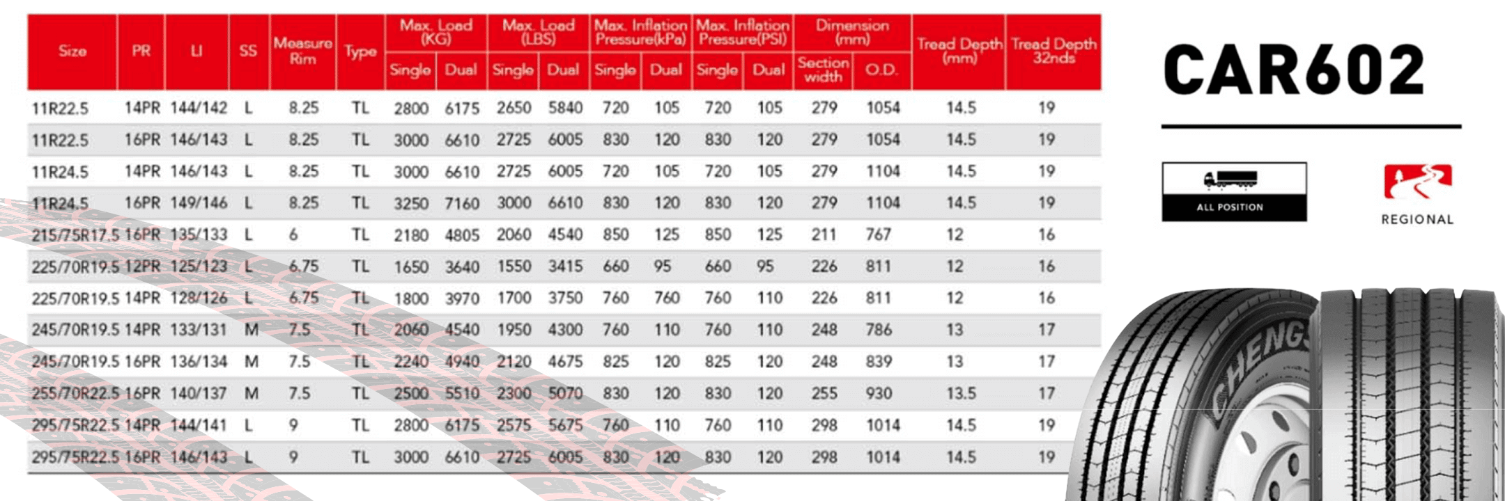 Llanta de camión diseño toda posición para largos trayectos y regionales . Con un mayo ancho de banda de rodamiento genera mayor estabilidad y duración.