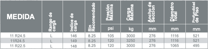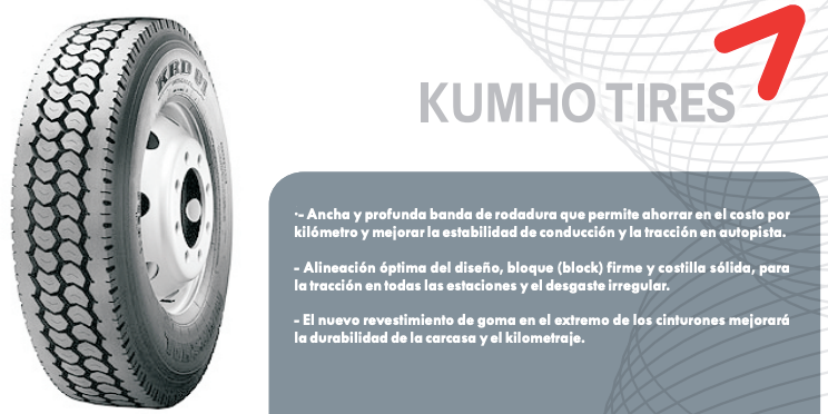 - Neumático radial de larga duración para vehículo de largo recorrido en autopista, en el eje de dirección Su diseño contiene protectores de hombros que aumentan la vida de la llanta evitando daños prematuros y aportando firmeza para un acabao regular.